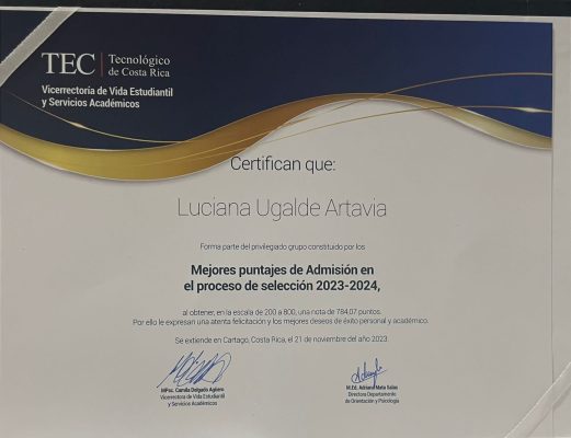 Colegio Metodista – Proceso 2023/2024 – TEC – Posición #7 – 784,07 puntos.